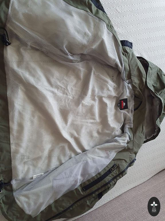Lietaus paltas su nuimamu gobtuvu, elastingais rankogaliais ir pažastų ventiliacija, atšvaitai.