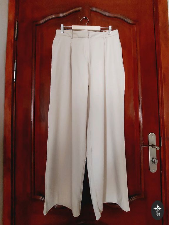 Новые черные брюки с поясом, карманами. Вискоза 80%, полиамид 20%. ITALIA. Ширина по бедрам 120см, длина 104см. Талия в нерастянутом виде.35×2, в растянутом виде 55×2см. Ширина низа брюк 34×2см. L/XL. Не мнутся. В талии резинка.