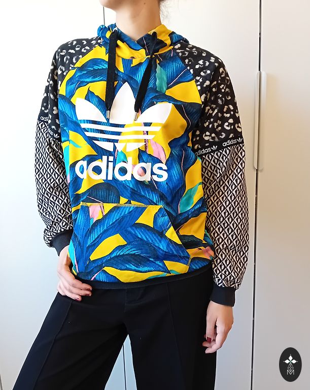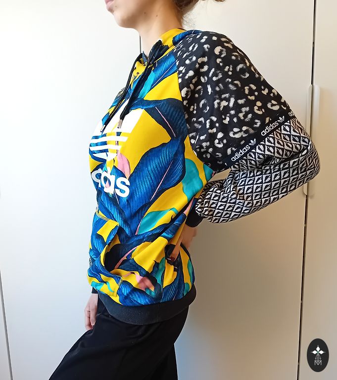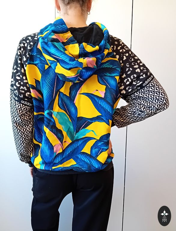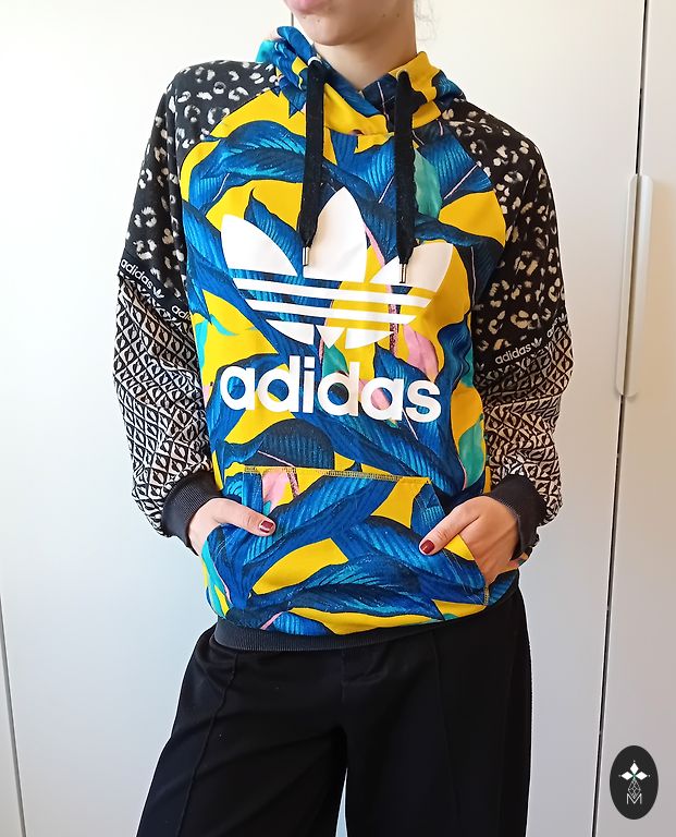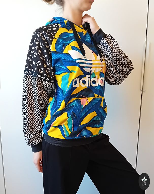 Madingas džemperis su gobtuvu. Feater wear prekės ženklas. XS / S dydis. Dėvėtas du sezonus. Siuntimas neįskaičiuotas į kainą.