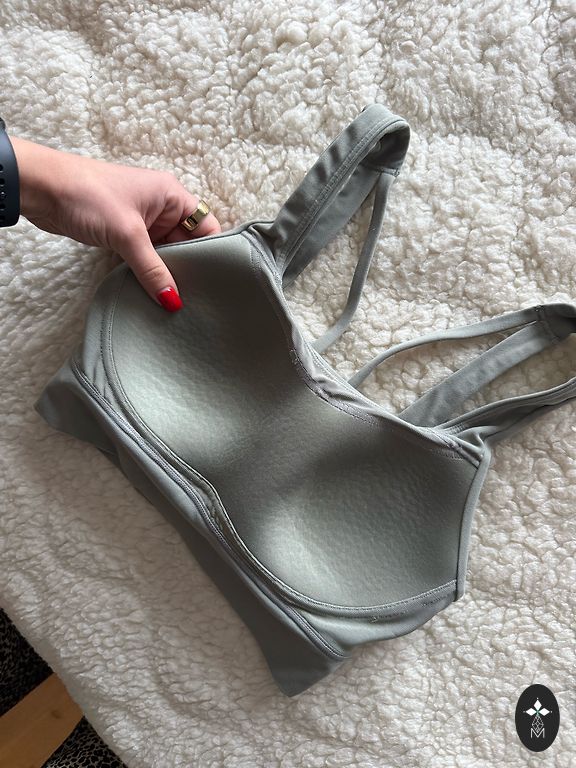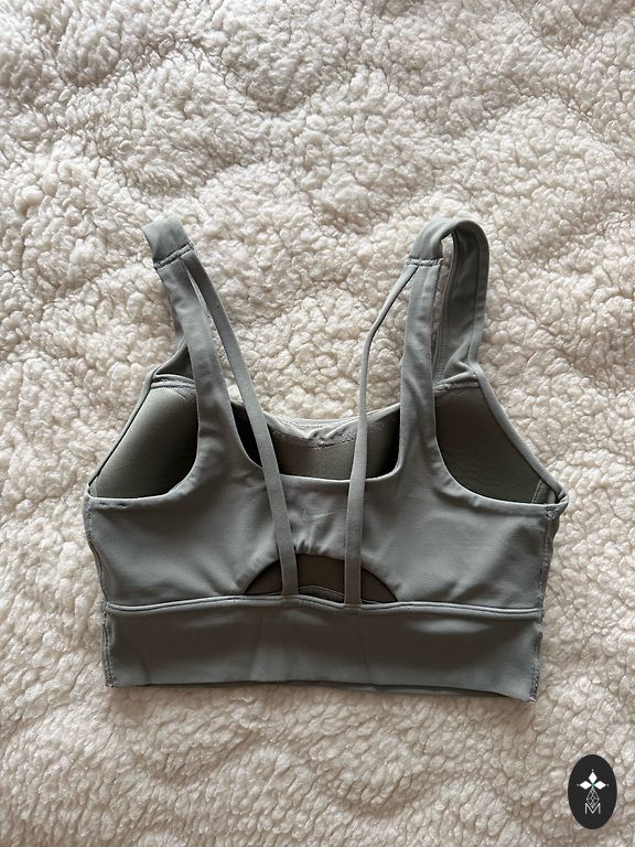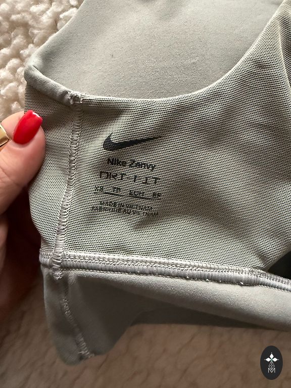 Nike sporta krūšturis. Tam var ielikt un izņemt polsteri (3. bilde) un mugurpusē tam ir elpojošāks materiāls. Tas ir ļoti ērts un kvalitatīvs. Ir nēsāts, taču bez jebkādam nolietojuma pazīmēm. S izmērs