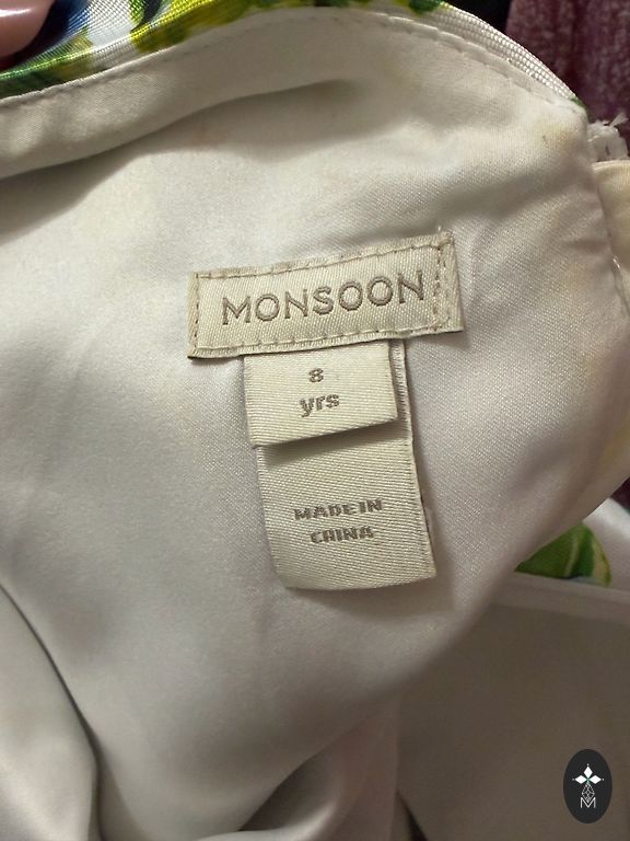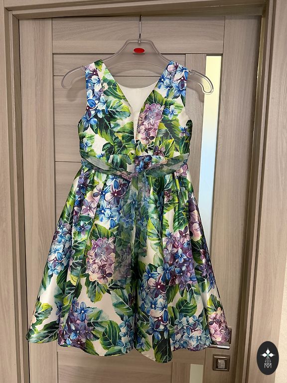 Suitable for a girl about 8 years old (height from 124 cm to 140 cm). The dress is in excellent condition, made to order. Worn only a few times for special events.