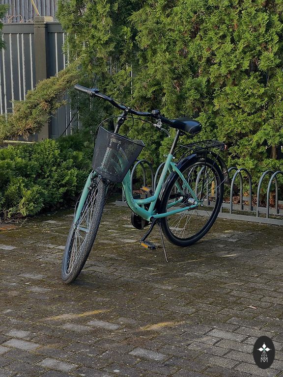 2 gadus nostāvēja garāžā. 28 izmēra riteņi, 3 ātrumi. Tehniski it ka viss strādā. Izbraucu apli, ātrumi slēdzas, bremzes bremzē, riepas tur gaisu. Nav jauna riteņa stāvoklis bet tas tomēr ir Erenpreiss.