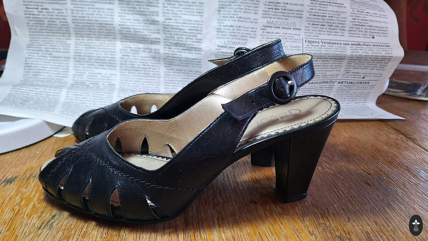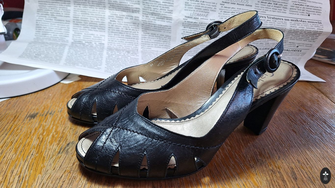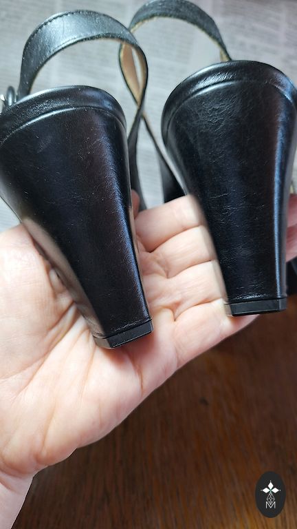 They were bought in a shop. Heel height 7 cm. Natural leather.