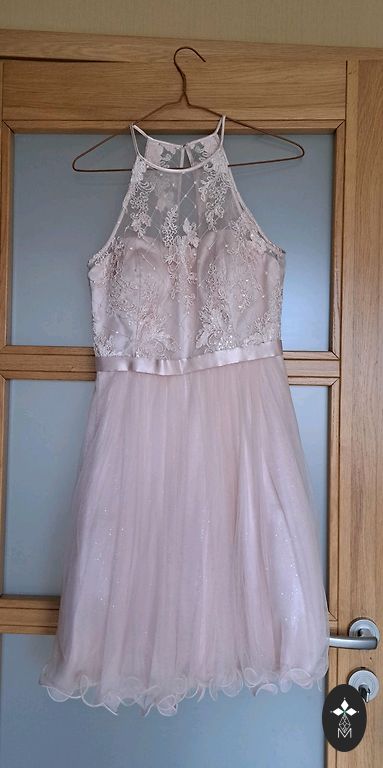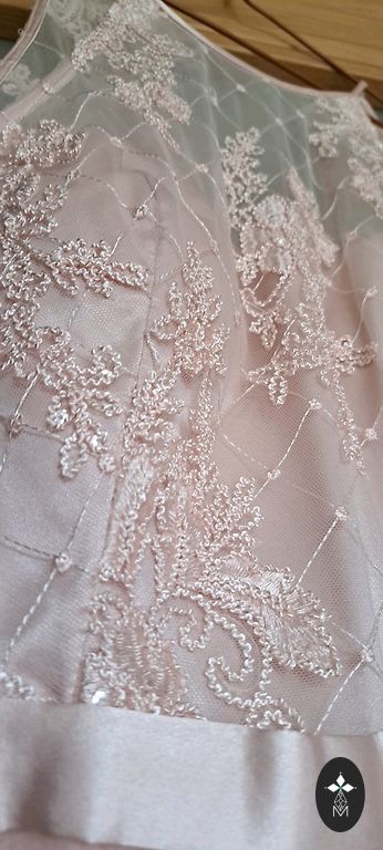 The color in the photo is not quite accurate - the dress is a soft pink, calm tone.