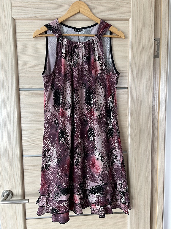 Suknelė puikios būklės, be defektų. Krūtinės srityje surišama, nugaroje užtrauktukas. Patogi. Dydis ant etiketės nenurodytas, tiks 38 dydžiui.