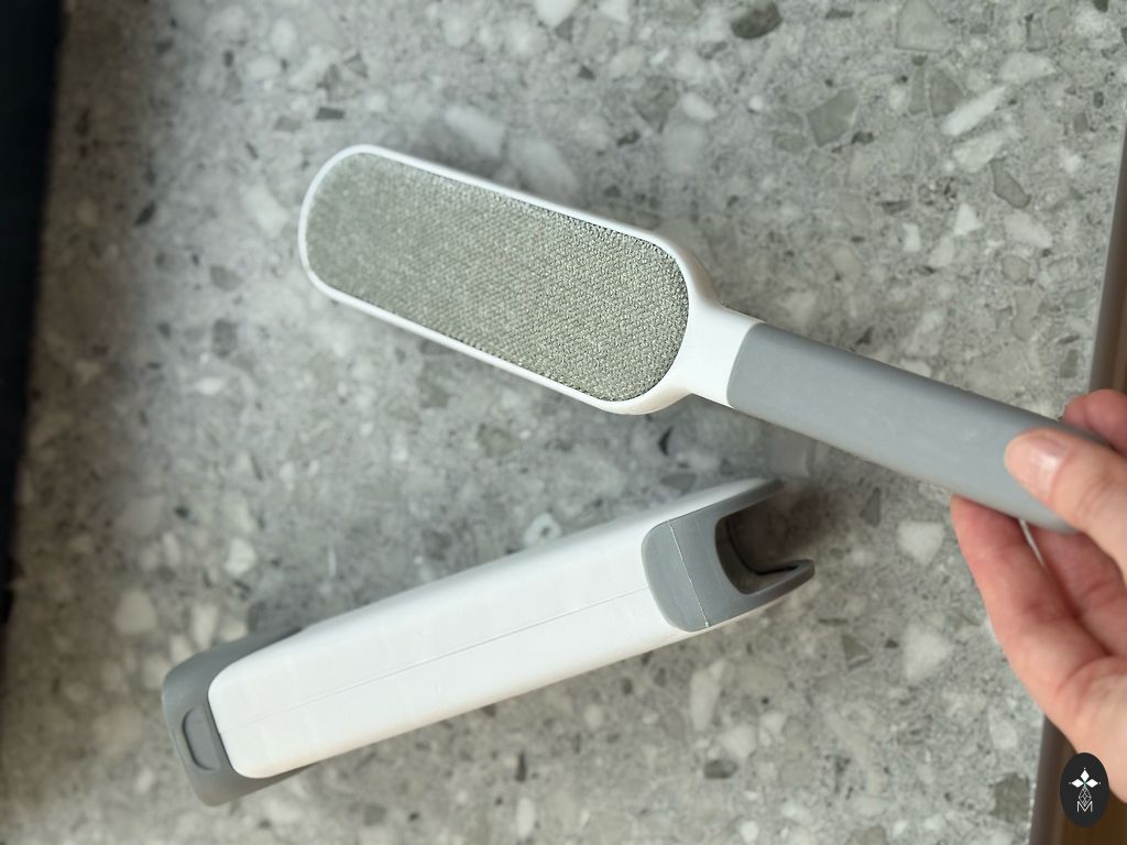 Lieliski noņem pūkas un bumbiņas no apģērba un mēbelēm. Strādā klusi, uzlādējams, ērts rokā.