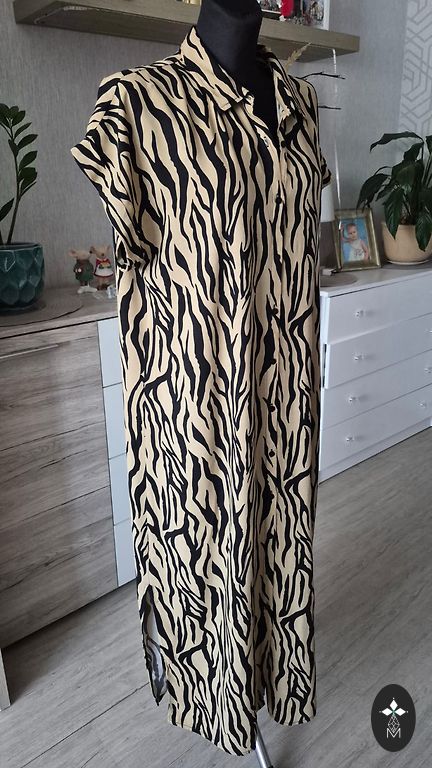 Kleita ir ļoti elastīga un pēc mazgāšanas nemaina formu. Piemērota pavasarim/rudenim, jo ir diez gan silta. Uzvilkta tikai dažas reizes. Garums 135cm. Derēs arī grūtniecēm, jo audums viegli staipās un nespiež punci.
