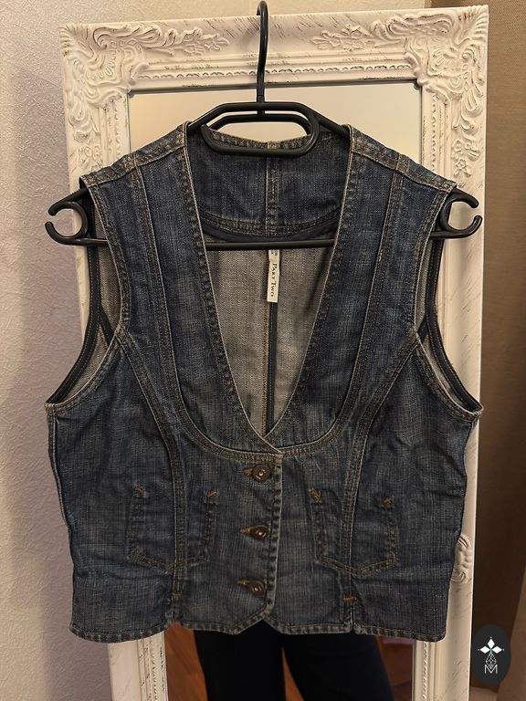 •Stilinga džinsinė liemenė su sagomis priekyje, puikiai atrodo tiek su kelnėmis, tiek su sijonu. Galima dėvėti vieną arba ant marškinėlių 🤍