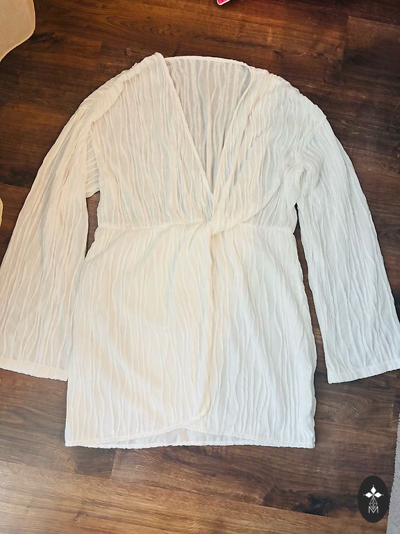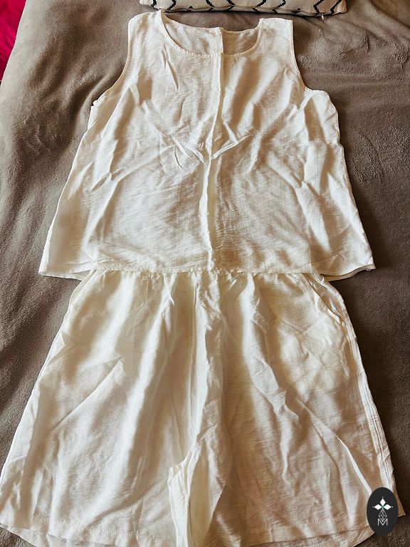 42-44 suurus, pikkus 110, rind 2x55, vöö 2x44 on kumm. On taskud ja vöö, väga heas korras.