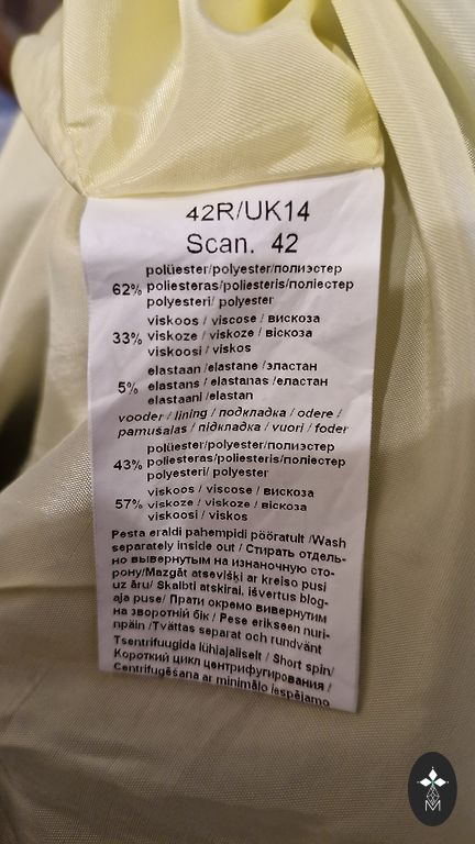 Garums 102 cm, krūtīs 122cm, gurnos 126cm, piedurknes saīsinātas - 34 cm. Plecu daļā mežģīne. Sastāvs - 70%viskoze, 30% poliesters.