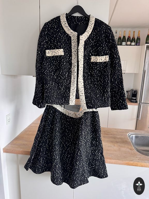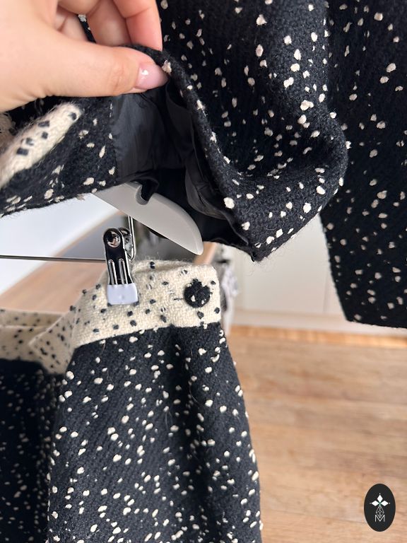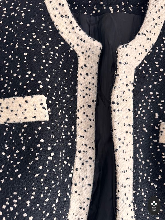 Jauna tvīda žakete 16 izmērs (eiropas XXL). Piedurknes garums 63cm, žaketes garums +-59 cm, krūšu apkārtmērs +-116cm. Žaketes sāni un piedurkņu ārpuse ir no melnas kokvilnas ielaiduma, apkakle un rāvējslēdzēji apšūti ar eko ādu.