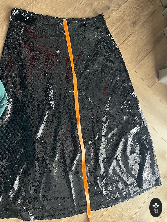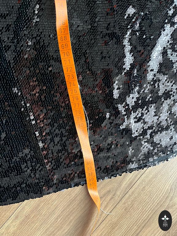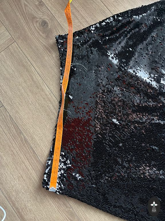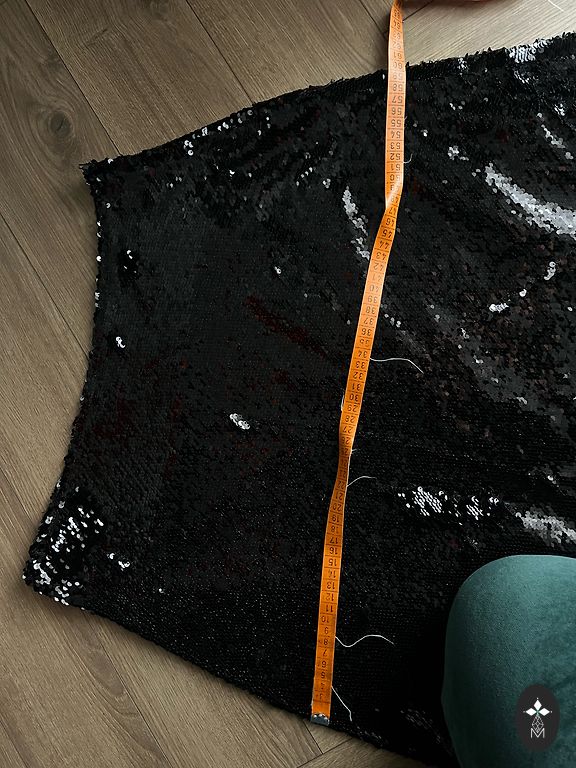 Талия 86 см, в бёдрах 106 см и длина 48 см, плотный материал