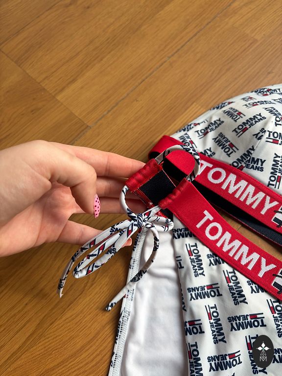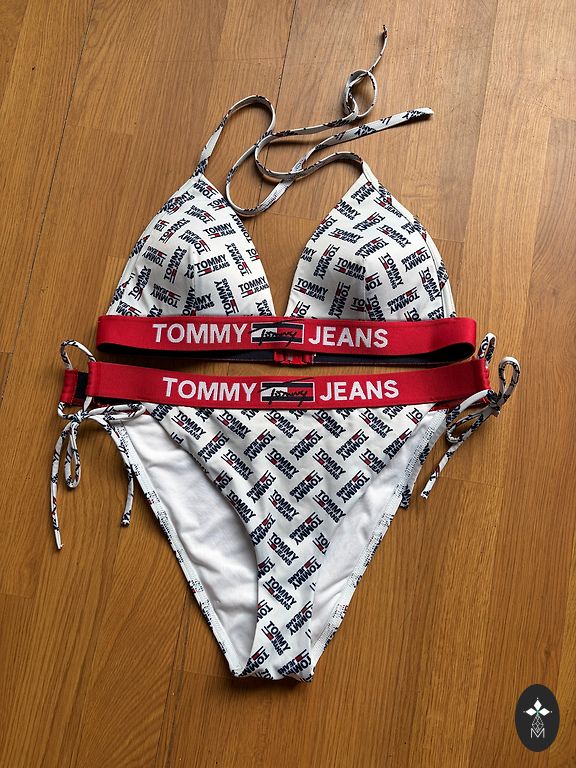 Gražus dviejų dalių maudymosi kostiumėlis su mėlynais ir baltais dryžiais. Viršutinė dalis su suformuotais kaušeliais (jei yra – gali patikslinti), gerai išlaiko formą. Patogus ir moteriškas modelis, puikiai tinkantis paplūdimiui ar baseinui.