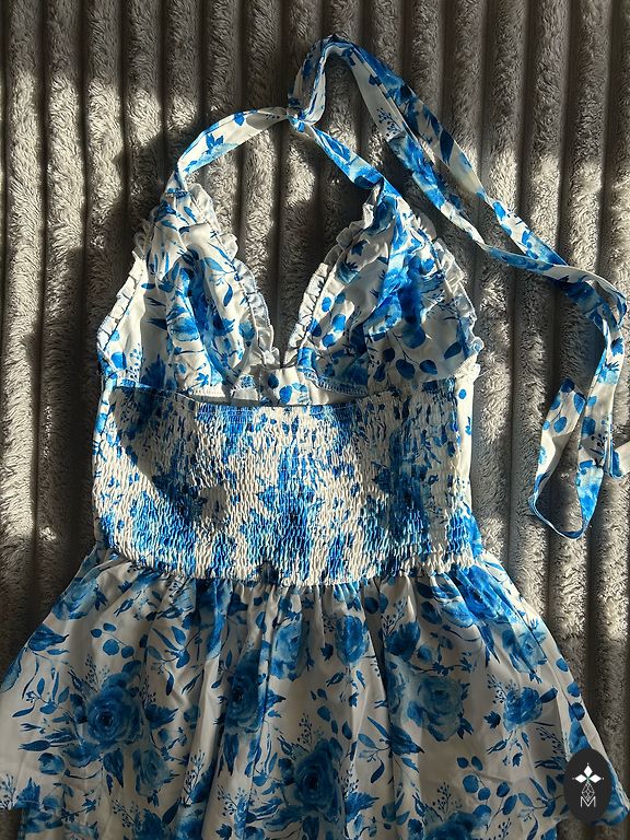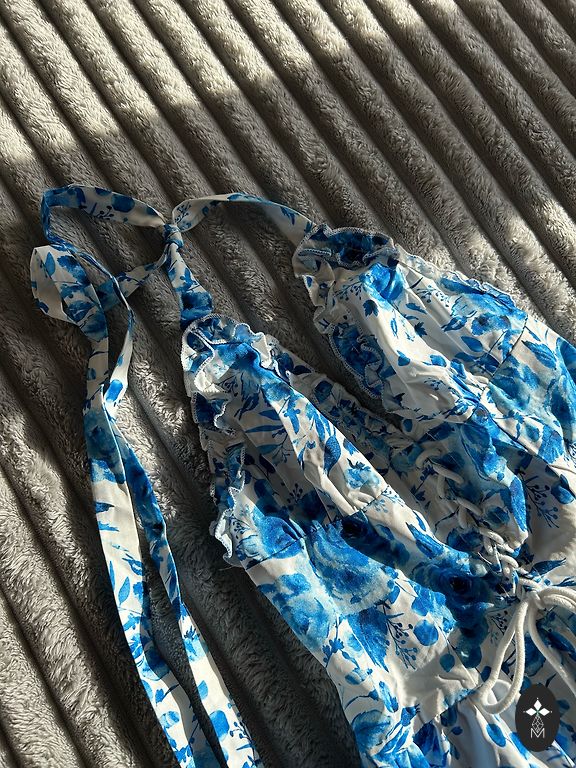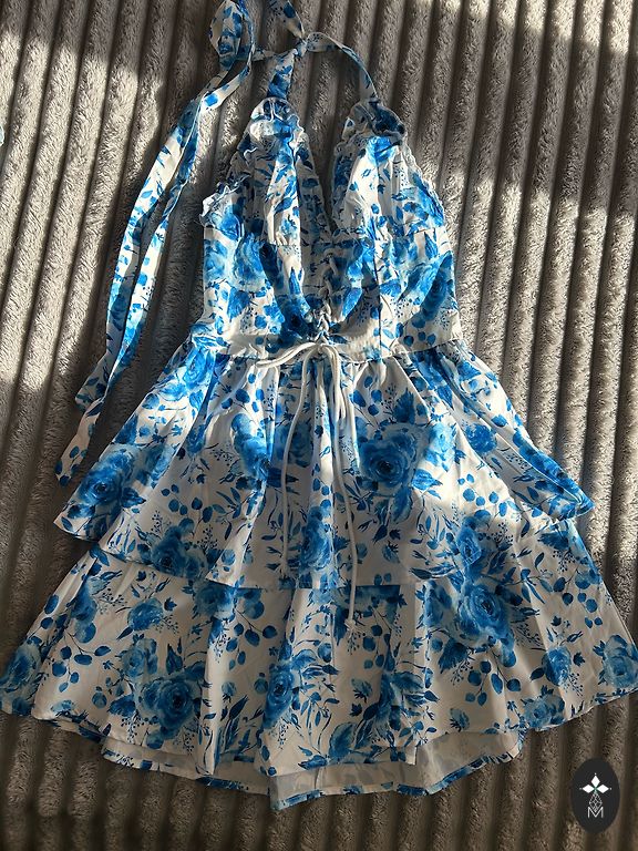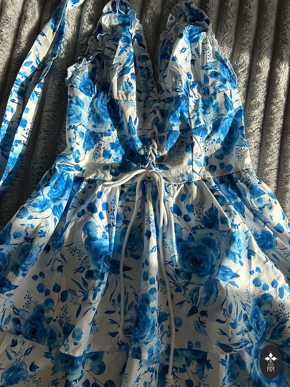 Kleta in this season's fashionable print. Great quality and sewing, which is characteristic of sewn clothes made in Poland. The dress has a thin cotton lining all the way down, to which a pleated tulle is sewn in the lower, fuller part of the dress to get a nicer fall of the lower part.