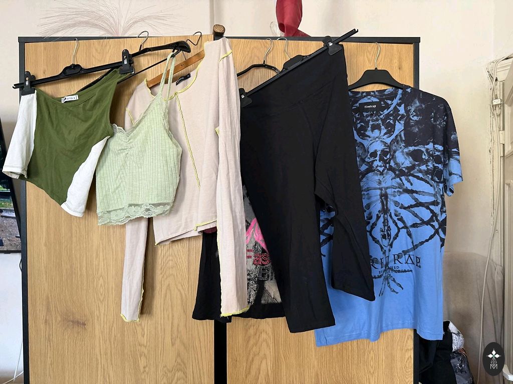 Комплект состоит из оригинальной блузки CK( можно сказать новая),брюки из кожзама( можно сказать новые),двух новых ремней.