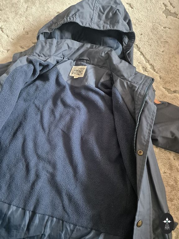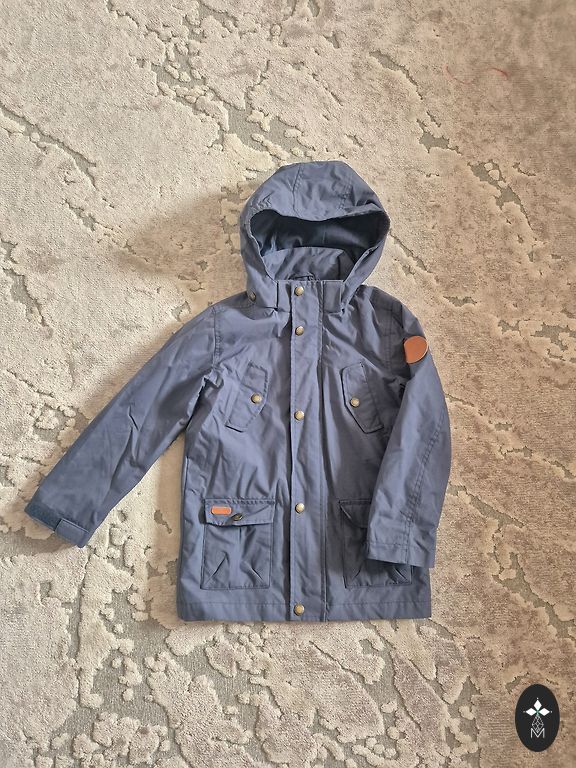 Pārdodu vējjaku tumši zilā krāsā puikam, odere spilgti zaļgani dzeltena, tīkliņveida, nav siltināta. Labā stāvoklī, ātri par mazu palika :). Ir divas kabatas sānos ar rāvējslēdzēju, kapuce, 128 izmērs, krūšu platums 31,5 cm. no pleca līdz apakšai 49,5 cm, rokas garums 43 cm