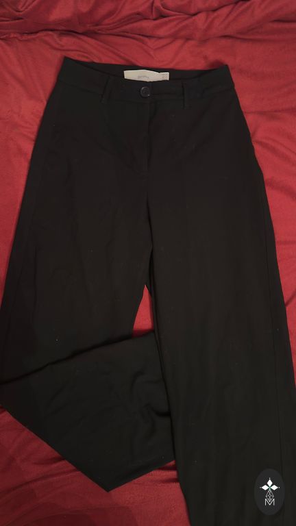 Derēs uz pagaru meiteni ar ļoti tievu viduklìti. Biksēm ir augstais viduklis. Bikšu staras platas. Nav ne reizi vilktas. Pirktas Itálijâ. Laba kvalitàte 50:50 polamíds :kokvilna
