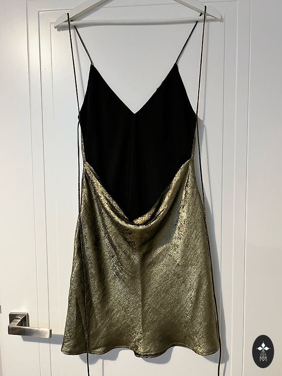 Ostetud Riias Showroomi poes, suuruseks märgitud 8. Seotav vöö või paelaga. Kantud 1x.