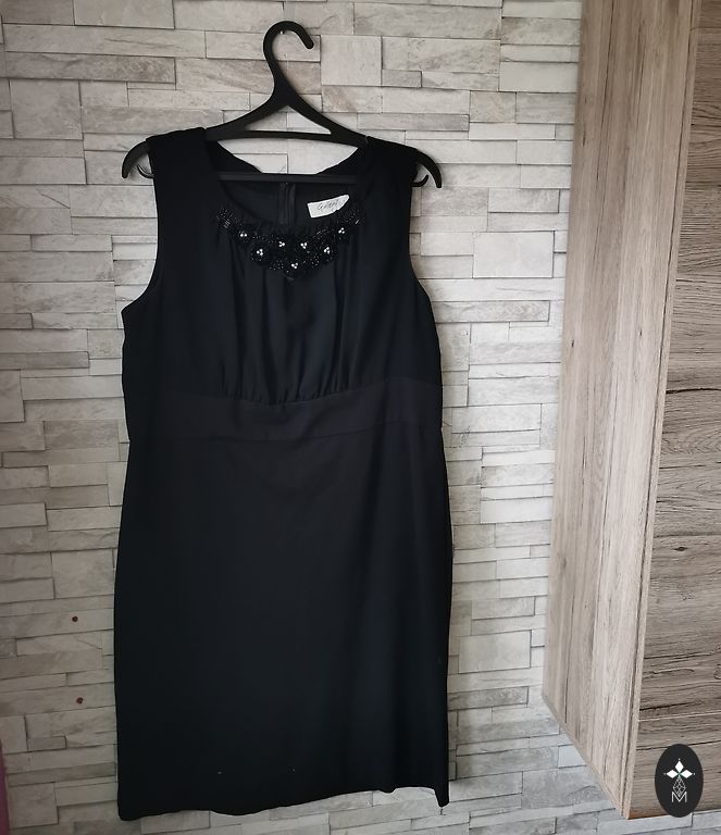 The dress has a zipper at the back
