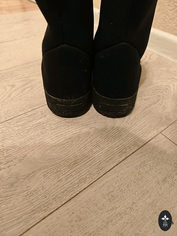 Batų matmenys - aukštis, matuojant nuo pado iki viršaus 43 cm, viršutinės dalies apimtis 44 cm, blauzdos dalis 42 cm, kulkšnies apimtis 32 cm, vidpadis 26,7/27 cm.