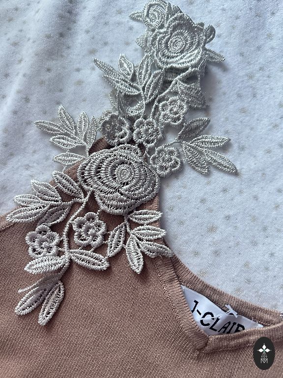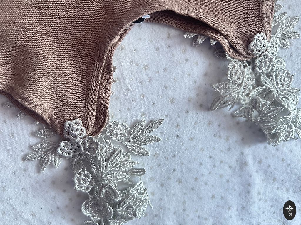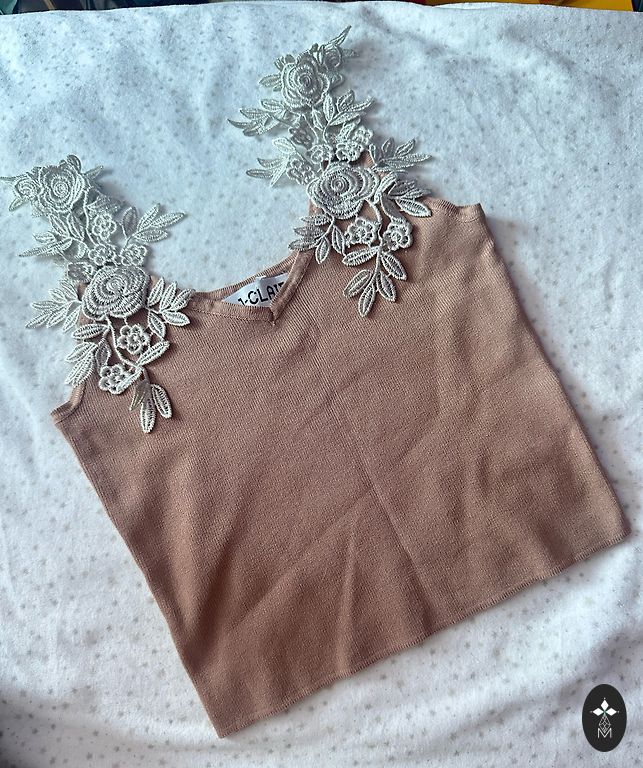 Кашемировые кружевные кремовые и мягко приятные хлопковые ткани, в два слоя на груди. В качестве дополнительного акцента - регулируемые шелковые бретельки кофейного цвета - женственно! 🤩