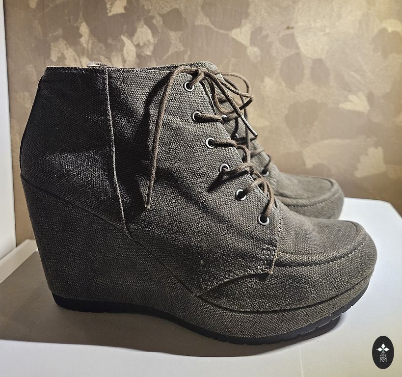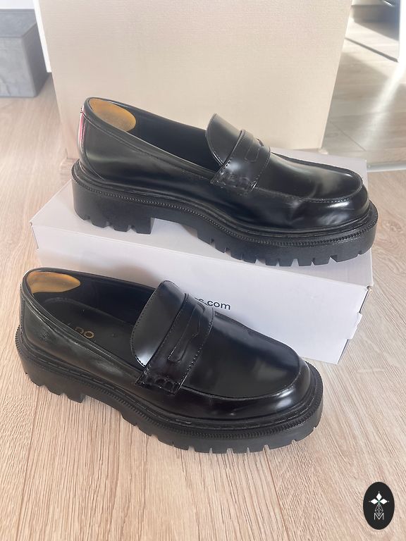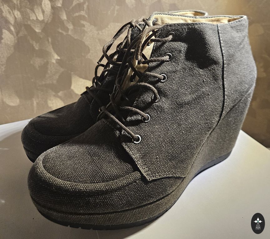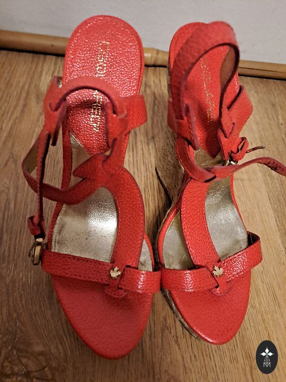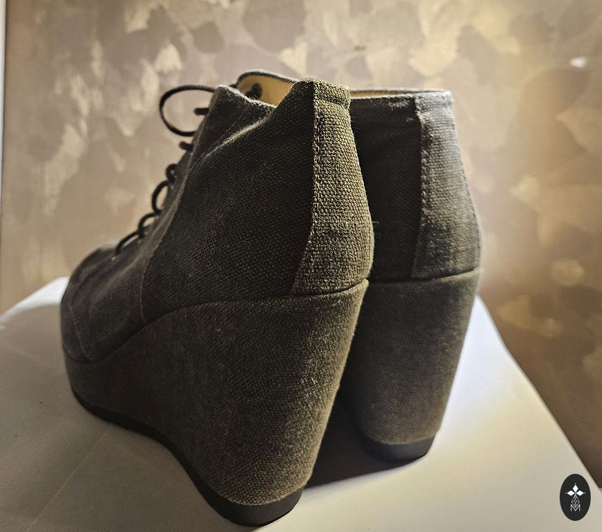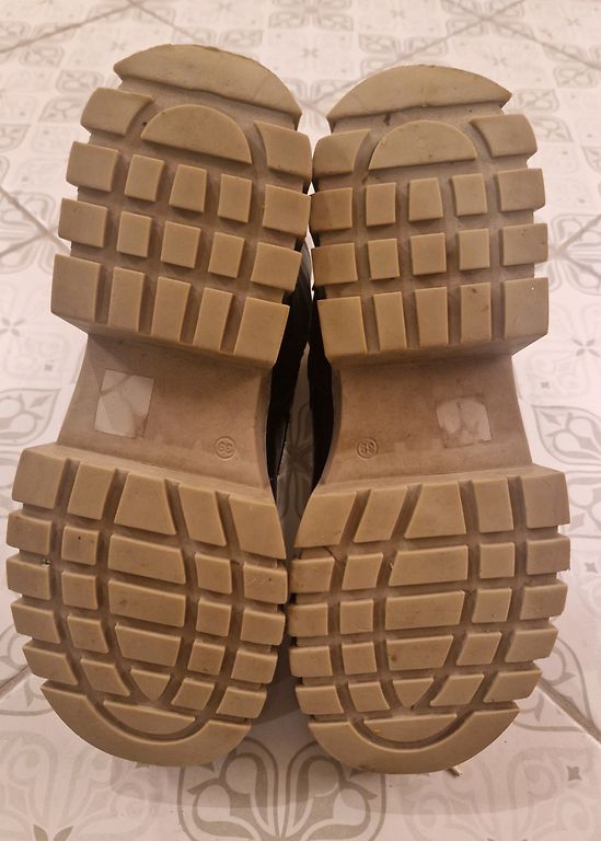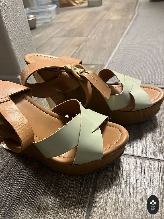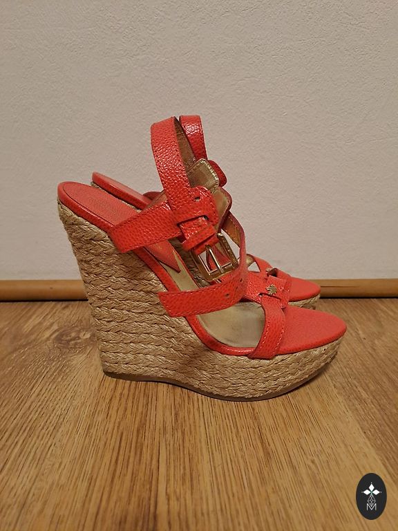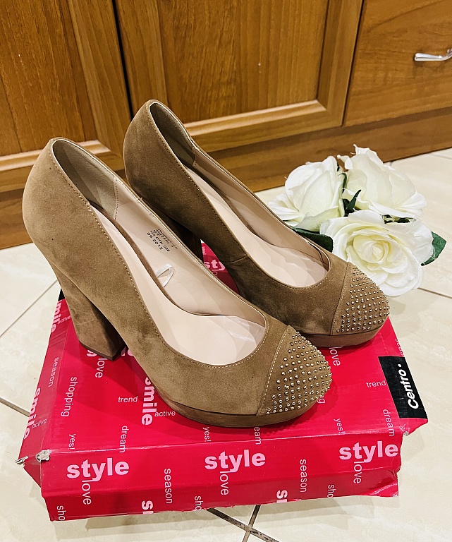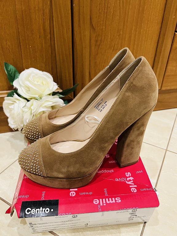 Labai stilingi ir patogūs platforminiai batai. Dydis 39. Nešiotai keletą kartų. 25,5 cm kulnas. Kartu su maišeliu (audinys su medinėmis rankenėlėmis – stilingas). Kaina už viską: 12 €.