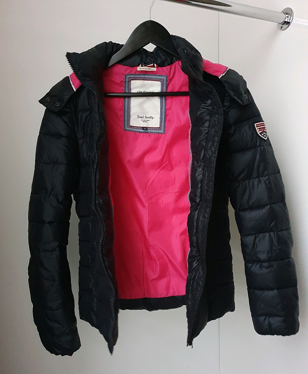 Šilta striukė, puikios būklės, kaip nauja. Apykaklė iš dirbtinio kailio. Dydis 36-38 (s/m).