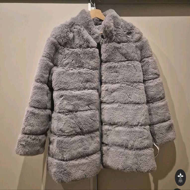 Naujas, pritaikytas. Dydis M. Su gobtuvu. Audinė. Grafito spalva. Ilgis 70 cm. Daugiau nuotraukų komentare.