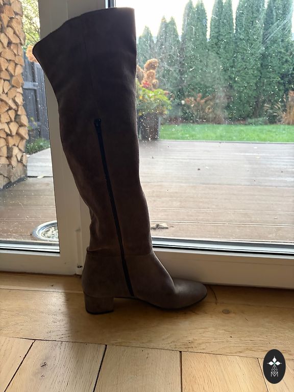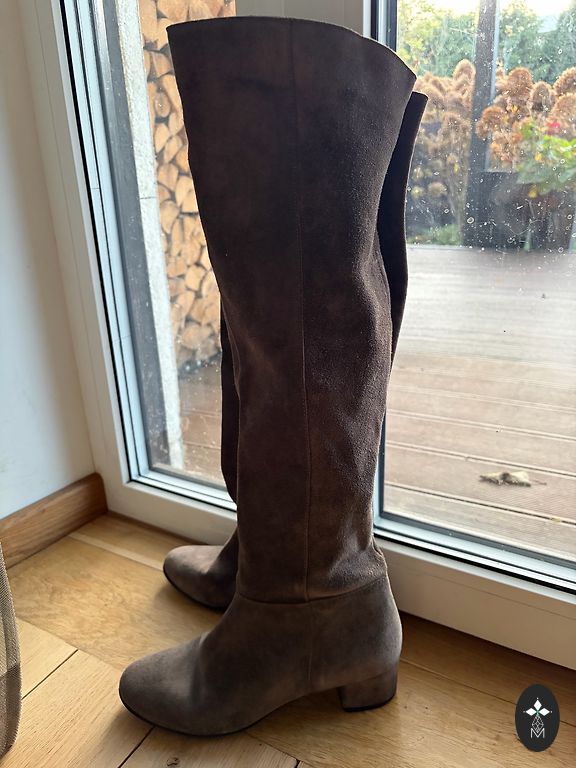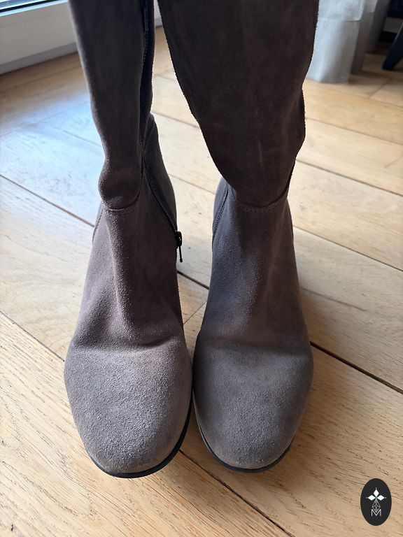 Ļoti stilīgi, ērti pelēkas krāsas zābaki. Izmērs 39. Uzvilkti tikai vienu reizi fotosesijā.