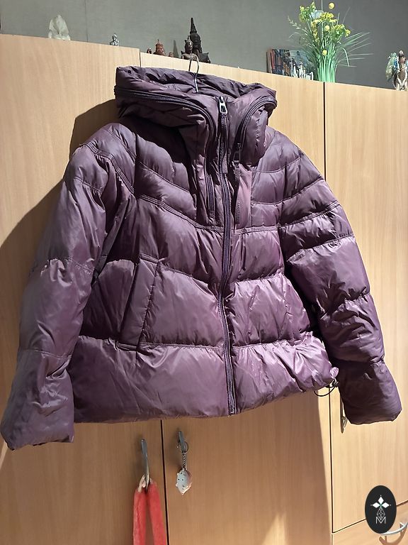 Dūnu jaciņa ar noņemamu mākslīgās kažokādas apkaklīti.Ļoti labā stāvoklī!Roku garums 73cm,jakas garums 64 cm,platums 91 cm.Apkaklíte ir noñemsma!
