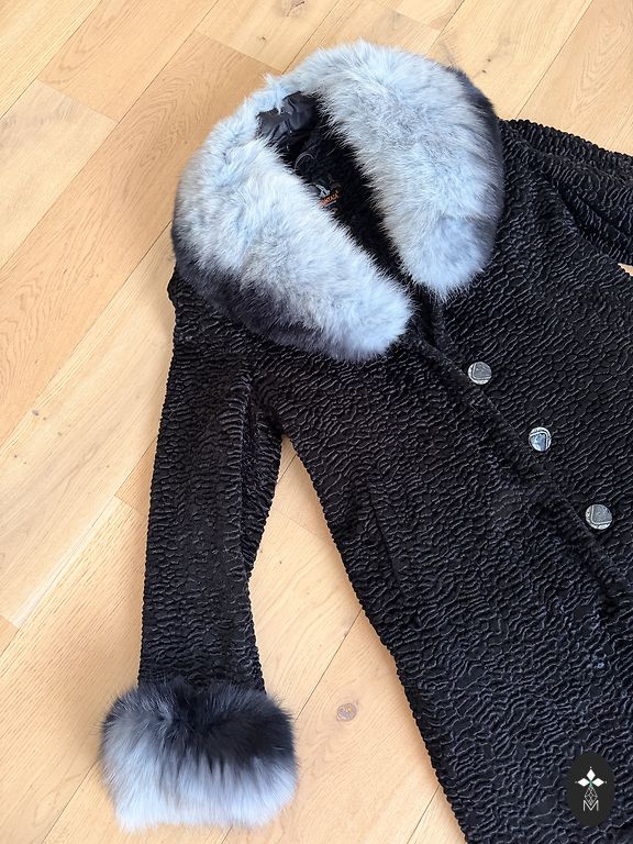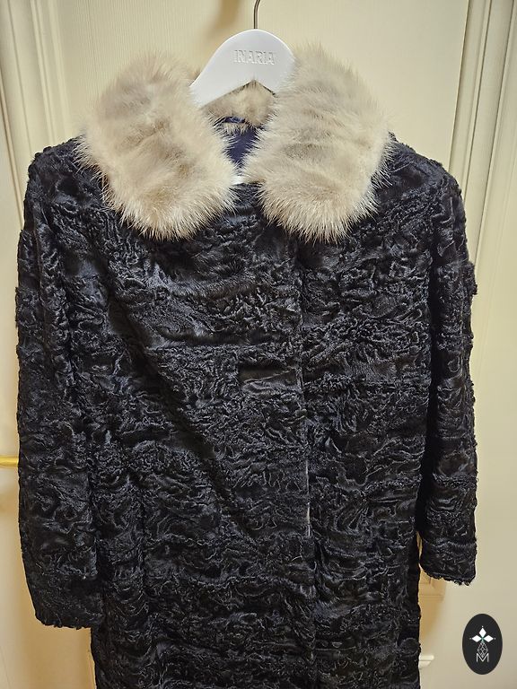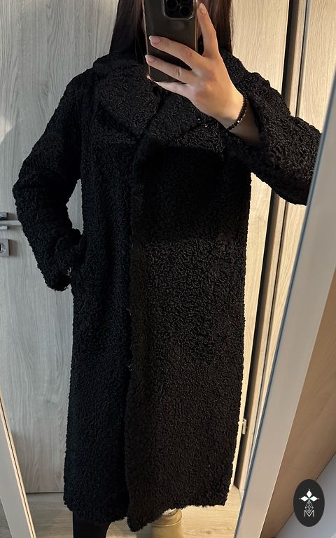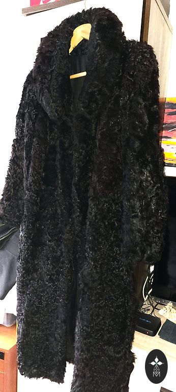 Must mantel, naturaalne karusnahk.