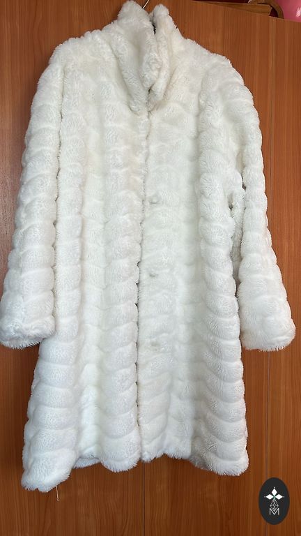 Ļoti skaists mākslīgās ādas kažoks, ražots Francijā. Ideālā stāvoklī, uzvilkts labi ja 3 reizes. Garums 115 cm, platums vidū 64 cm, piedurkne 62 cm.