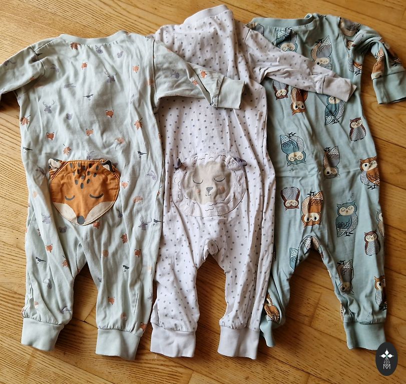 Lielisks komplekts ar Ninja bruņurupuci. Uz izmēru 80 (norādīts 92, bet tas ir mazāks). Ļoti mīksts kokvilna. Kvalitatīva aplikācija uz pidžamas. Ir neliels defekts uz pidžamas - uz biksēm nokļuvis balinātājs un parādījies traips (redzams foto), kā arī dažviet nedaudz nolupusi krāsa no pogām. Pārējais ir labs, skaists komplekts! Rīgas centrs / pakomāti ♡