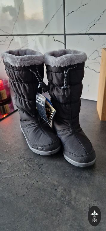 New, never-used Viking winter boots. Quality, moisture-resistant. We use GTX Viking winter boots ourselves because the foot doesn't sweat, stays warm, and doesn't get wet even when walking through deep snow. I'm giving them away for 40 EUR, excluding delivery if needed. Foot size 12.3 cm.