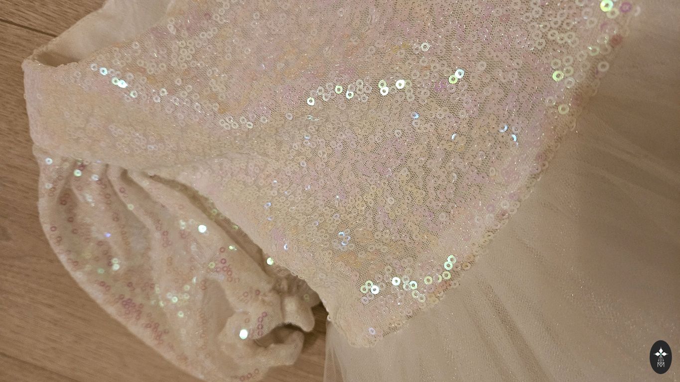 Suknelė yra 60 cm ilgio ir 31 cm pločio. Ji yra labai graži ir puikios būklės.