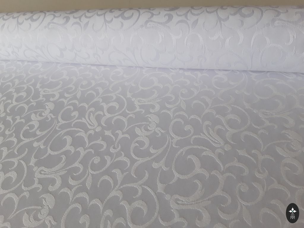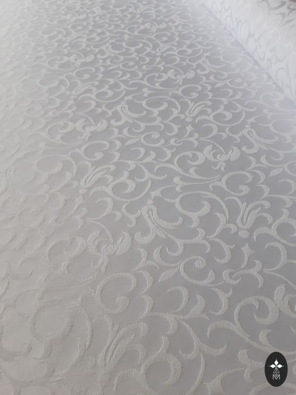 Ir pieejamas māklīgais zīds ar elastānu 150*300. Interesants raksts tā kā tamborējuma zīmējumi. Liels gabals.