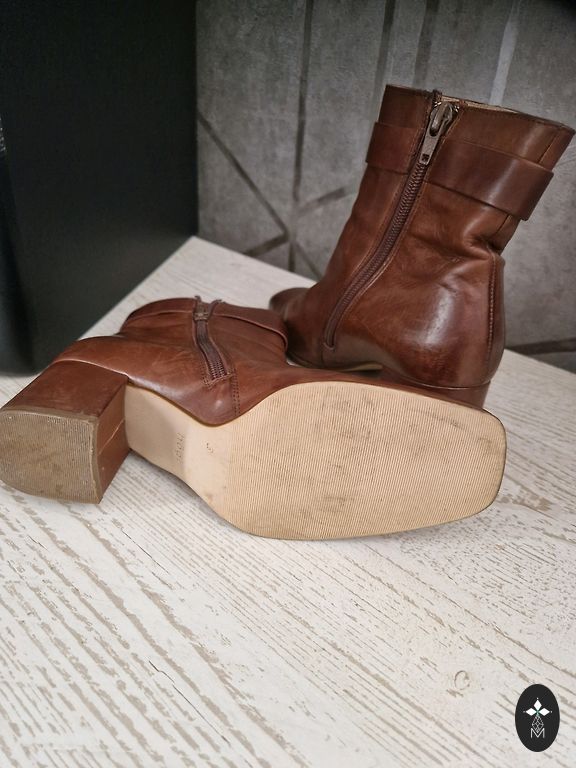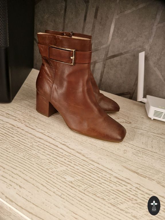 Mīksta dabīgā āda skaistā brūnā/sarkanbrūnā krāsā un neliels, stabils papēdis ~5cm, kas būs ērts arī ikdienā steidzīgajiem. Iekšpusē pavisam neliels siltinājums.