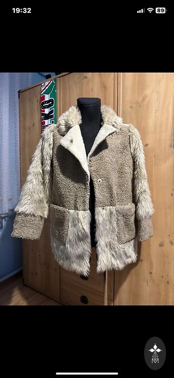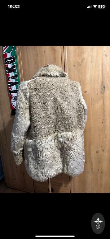 Labai šiltas odinis/zomšinis paltas su kailine apykakle ir rankovėmis.