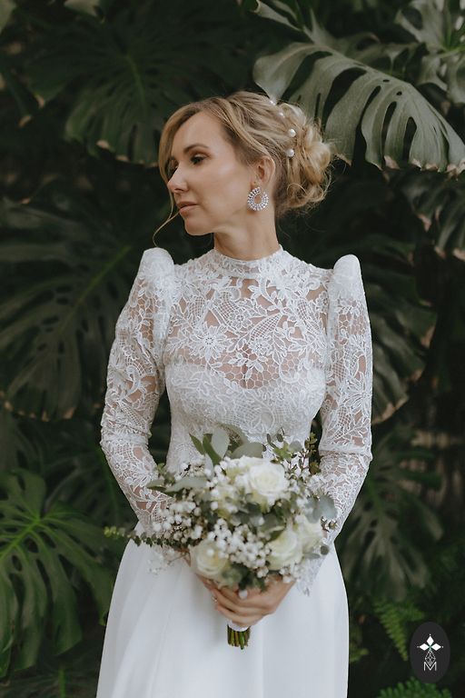 A gorgeous wedding dress from the Ingrida Bridal salon (approx. size S). The dress is very high quality. The dress has a separate tulle skirt with a ribbon fastening; the photos show the dress with and without the skirt. The dress was cleaned at the Ingrida Bridal salon after the wedding. I am 163 cm tall, and my wedding shoes had 9 cm heels. The bottom fabric of the dress is a soft pinkish beige, with white lace on top. The dress has no defects and is like new. In real life, the dress looks fabulously beautiful, dreamy, luxurious, and interesting with its sparkle :) Feel free to ask for additional photos. I can deliver it myself for fitting within Riga. We can discuss the price.
