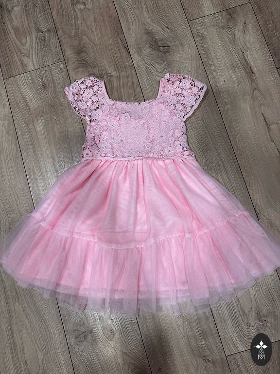 Svētku kleitiņa, līdz 104 cm, ar ravējslēdzi aizmugurē un jostiņu.