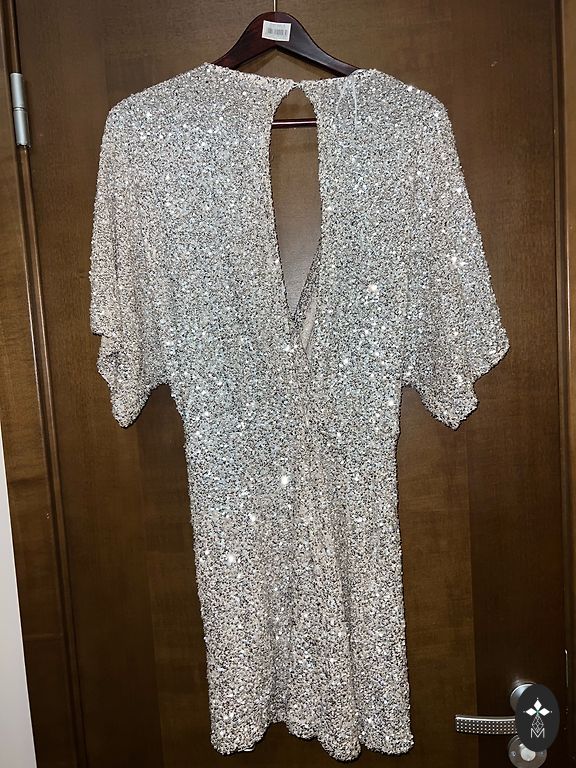 Silk dress-tunic, photoshoot for celebrations. HandMade 100% silk. One size. Length 80 cm, width 90. Decorated with silver and glitter. Looks beautiful with a black turtleneck or top paired with black skirts. Includes a belt. One size.