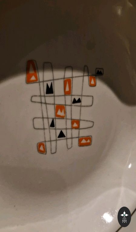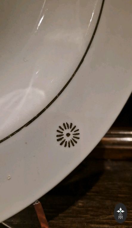 Lai gan tas ir bērnu šķīvis, tā izmērs (Diametrs 19,7 cm, Augstums 2,6 cm) ir tāds, kādu pieaugušie var izmantot kā parastu brokastu/ salātu vai pusdienu šķīvi. Oranžās rozes rotājums un zelta maliņa. Bez defektiem. Sarkanie zīmogi. 6gb. Cena par visiem kopā.