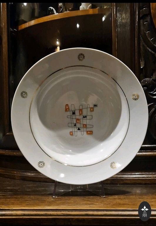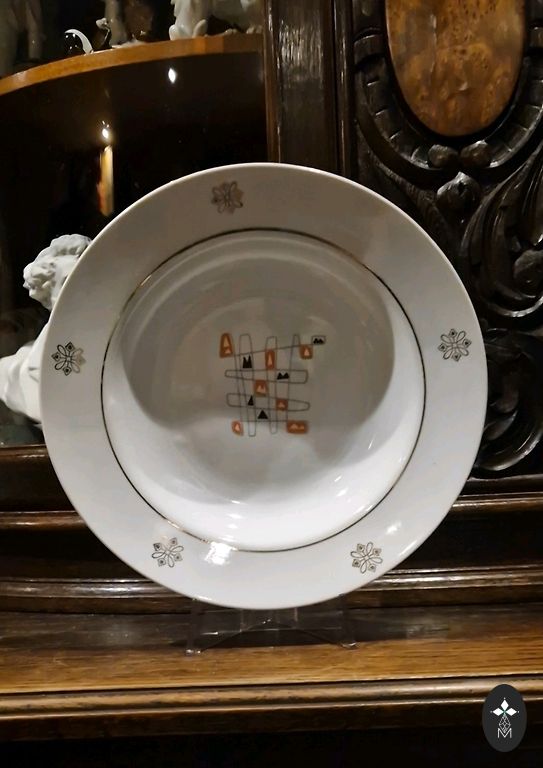 Bērnu pusdienu šķīvis, kas ražots porcelāna rūpnīcā Rīgā, Latvijā 1960. un 1970. gados.