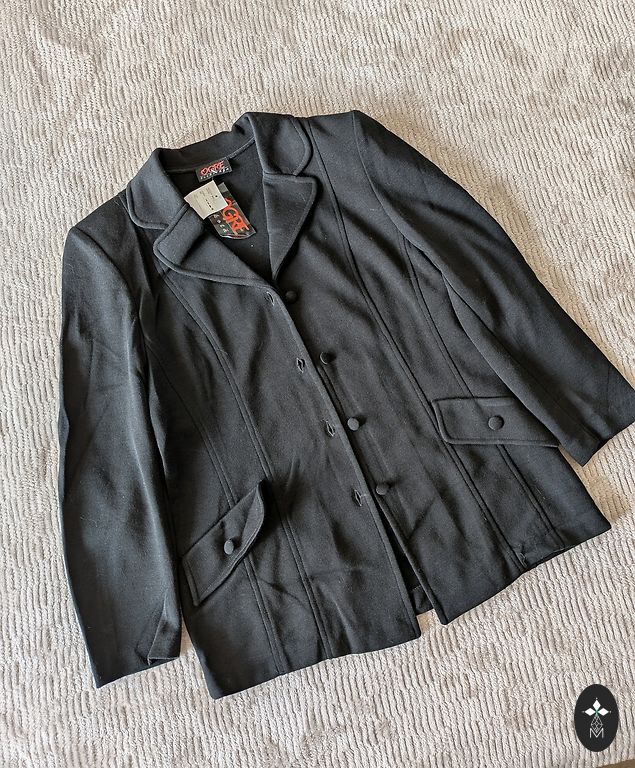 Pikkus 95 cm. Rindkere ümbermõõt 102 cm. Talje 92 cm. Varrukad 57 cm. Õlad 44 cm.