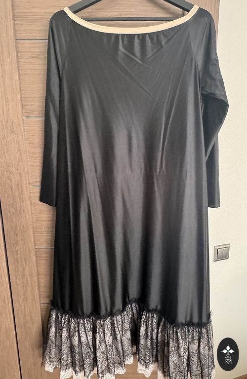 Skaista, koša. Ļoti kvalitatīvs audums. UK 14 izmērs. Mugurpusē pagarinātā. Derēs 40-42 izmēram.