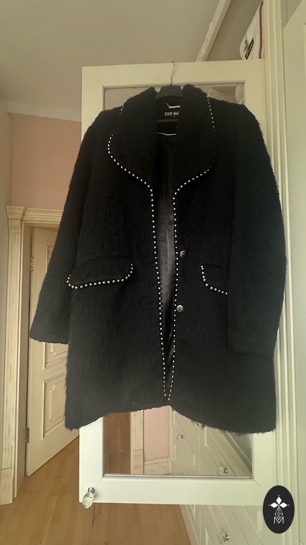 Krāsa melna (foto izskatās bālāka). Uz piedurknes, iekšpusē, ir neliels aizķērums, tāpēc valkājot tas nav pamanāms. Pārējā ziņā lieliskā stāvoklī. Derēs siltai ziemai.
