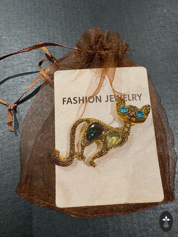 Vintage segė, puikios būklės, spalvotas emalis, kristalai. 10×4 cm.