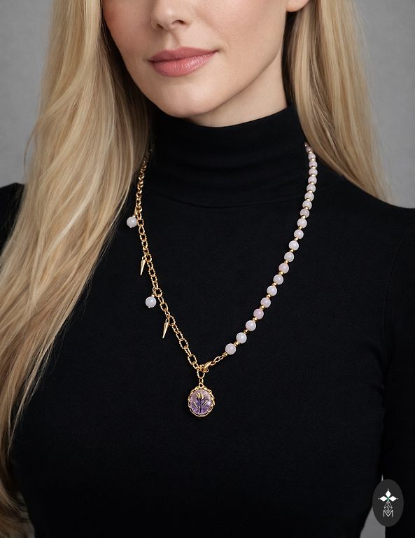 Natūralūs akmenys. Kaklo grandinės ilgis – 60 cm (be grandinės).