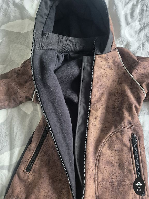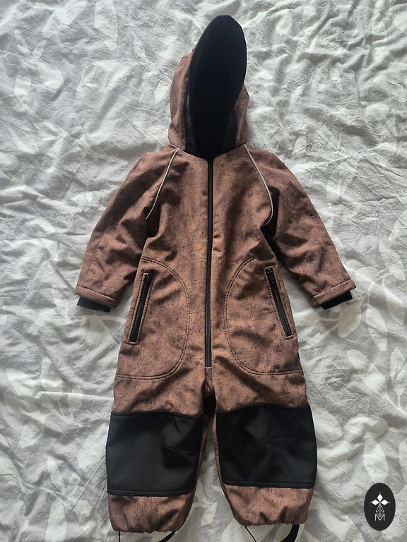 Kerge, mugav, seespoolt pehme vilt (harva juhtub selliseid), last ei pea sisse toppima. Meie jaoks liiga väike, kantud 1x - seega ideaalses seisukorras - uus ei ole, sest sildi eemaldasin :) üldpikkus õlast minu arvates 65 cm, käeosa 20 cm + mansett on lõpus :) Kombinesoon, millel pole kusagilt miinust leida :) kõik on läbi mõeldud... On olemas ka saapakesed, 21 suurus, kui huvitab :)