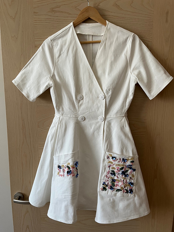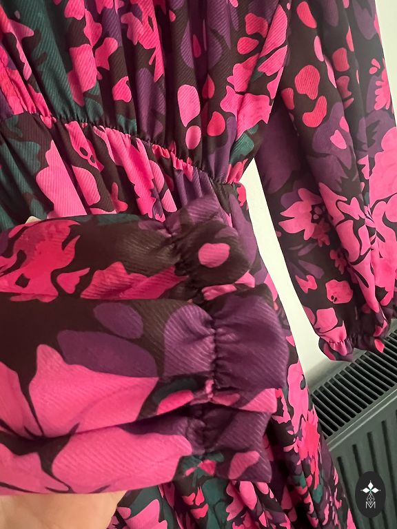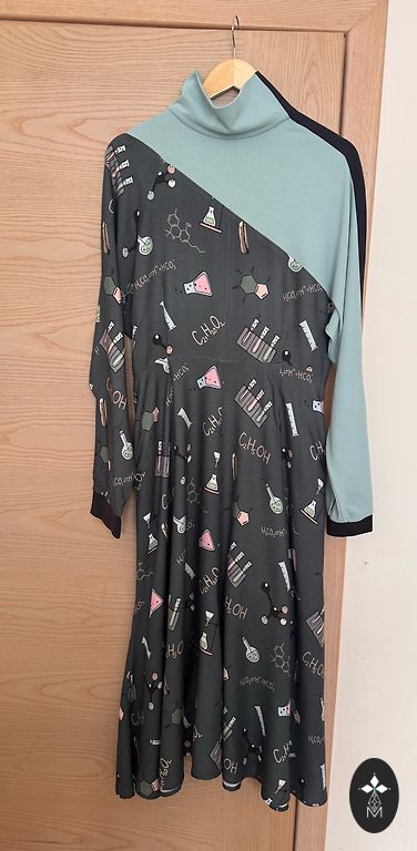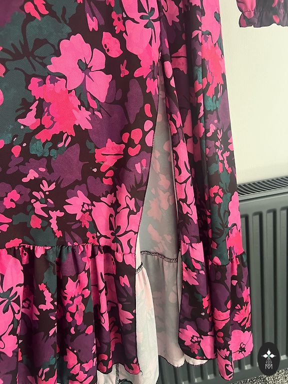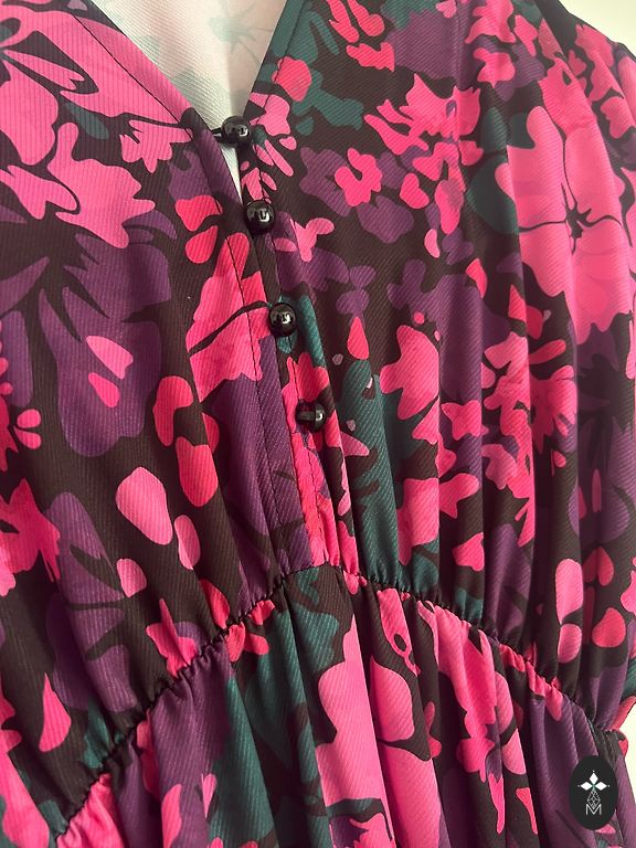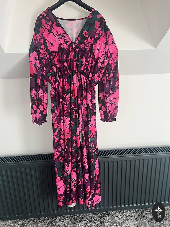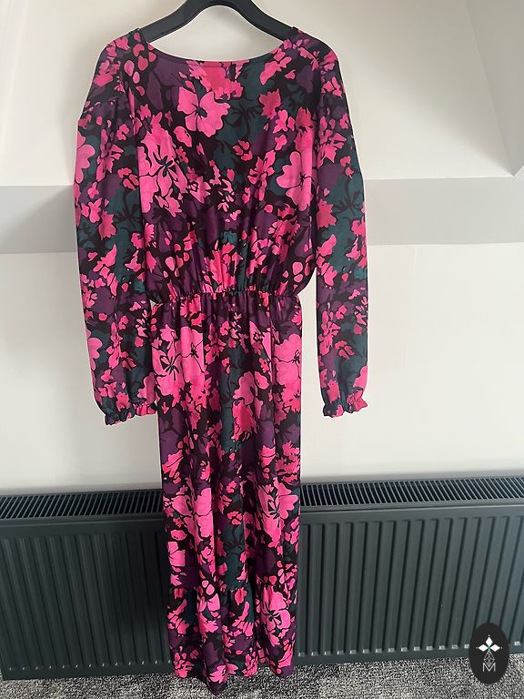 Blue dress with a belt. Button closure. Very elegant and feminine. Size 42 on the tag.
